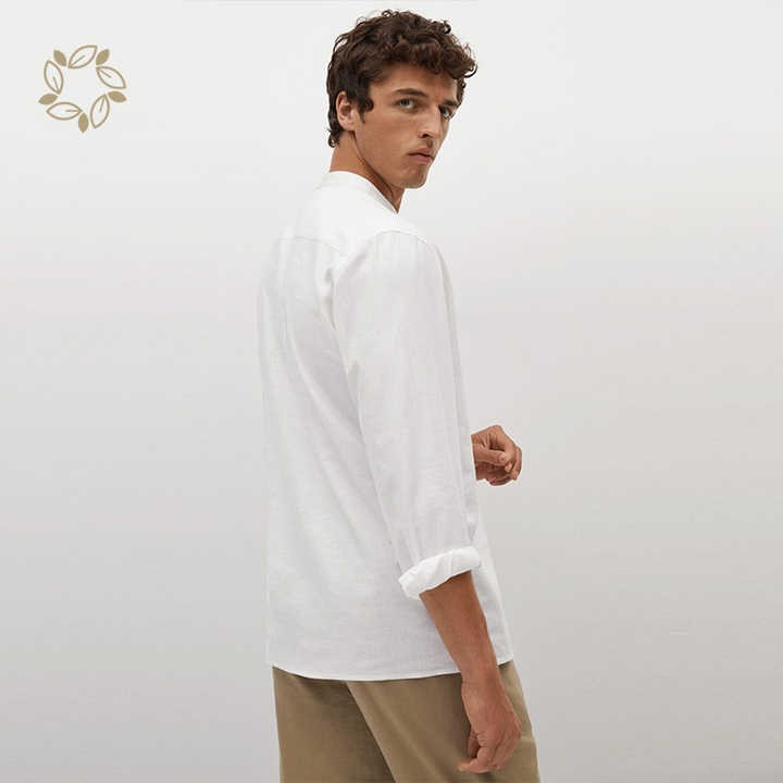 Online Exclusive. Regular fit. Linen mix. Flowy fabric. Mao neckline. Long sleeve. Button up.