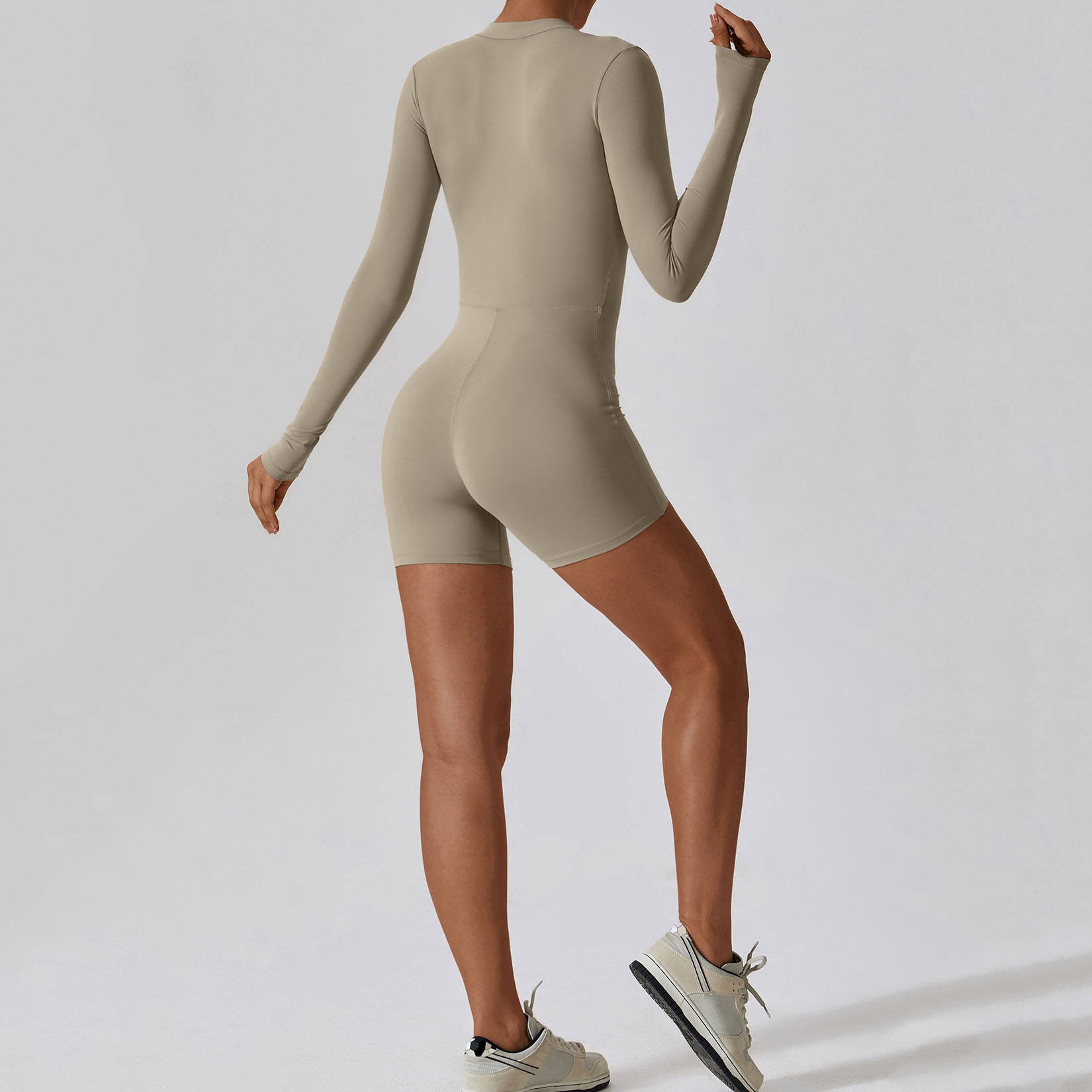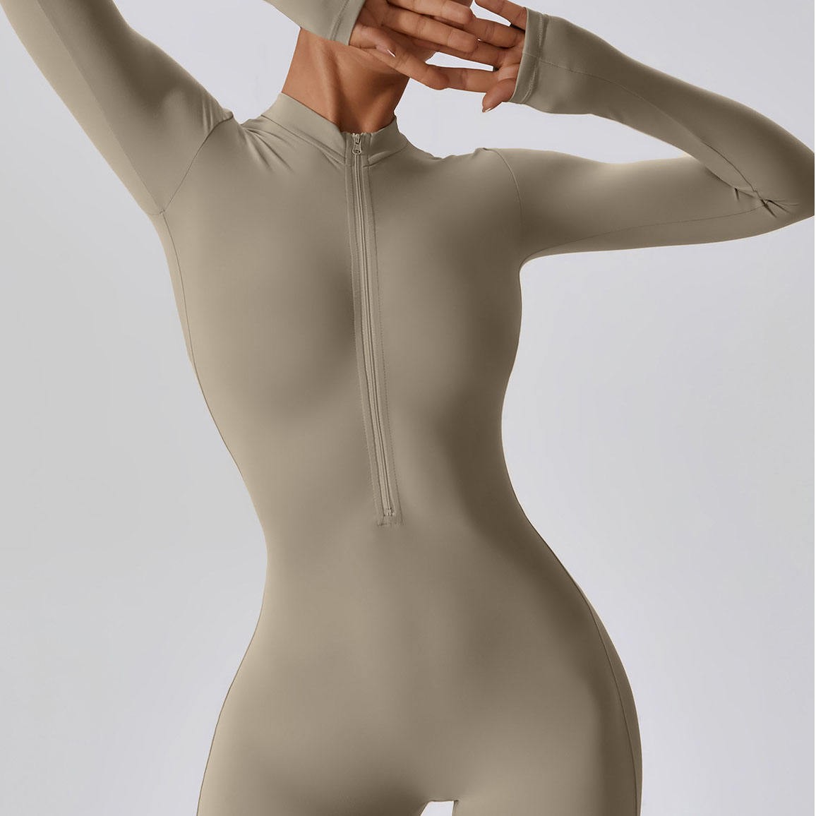 Half Zip Brushed 78%Polyamide 22%Elastane Stretchy Long Sleeve Short Sportswear Fitness&Yoga Wear Body Suit Women Jumpsuit